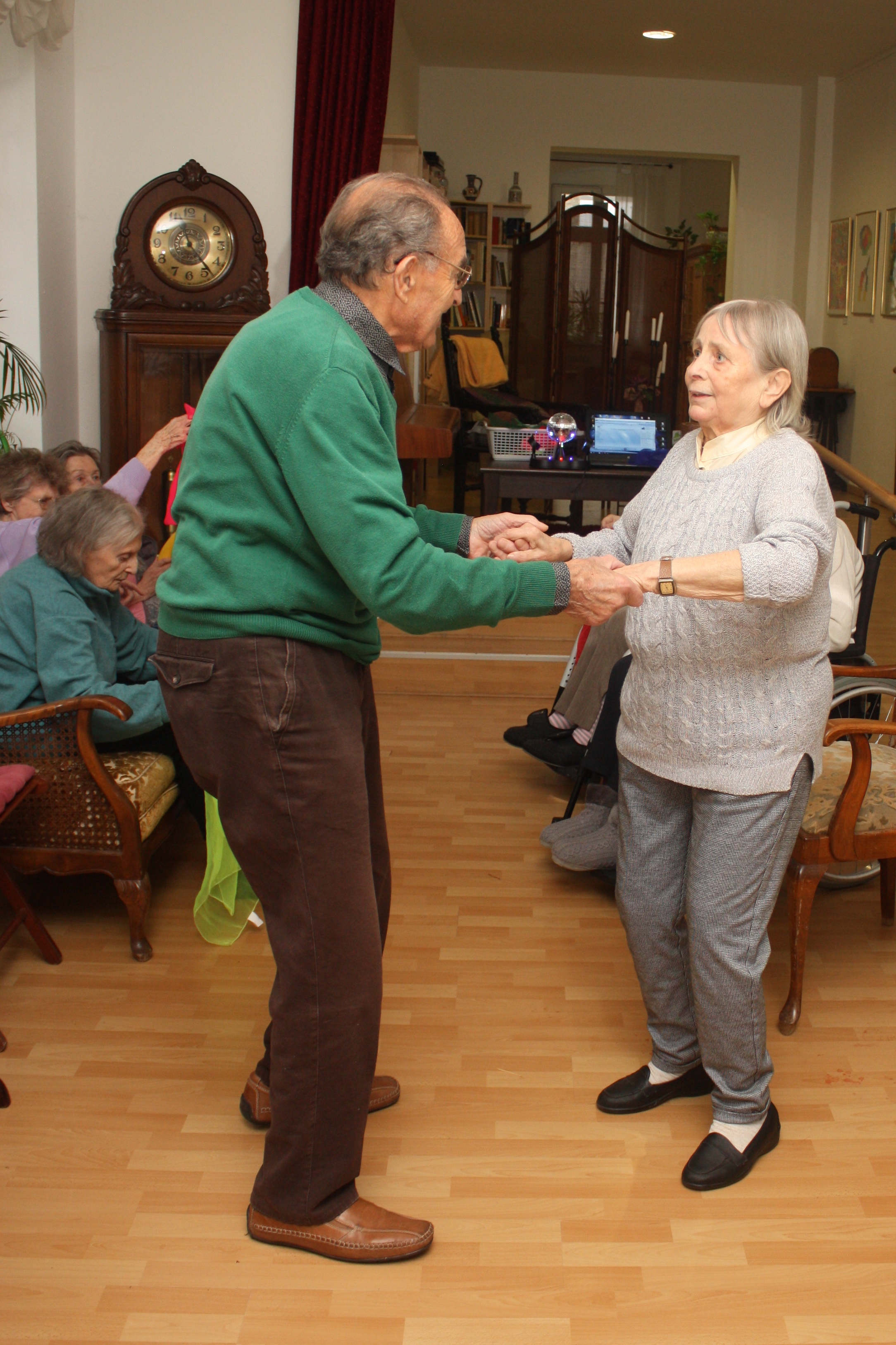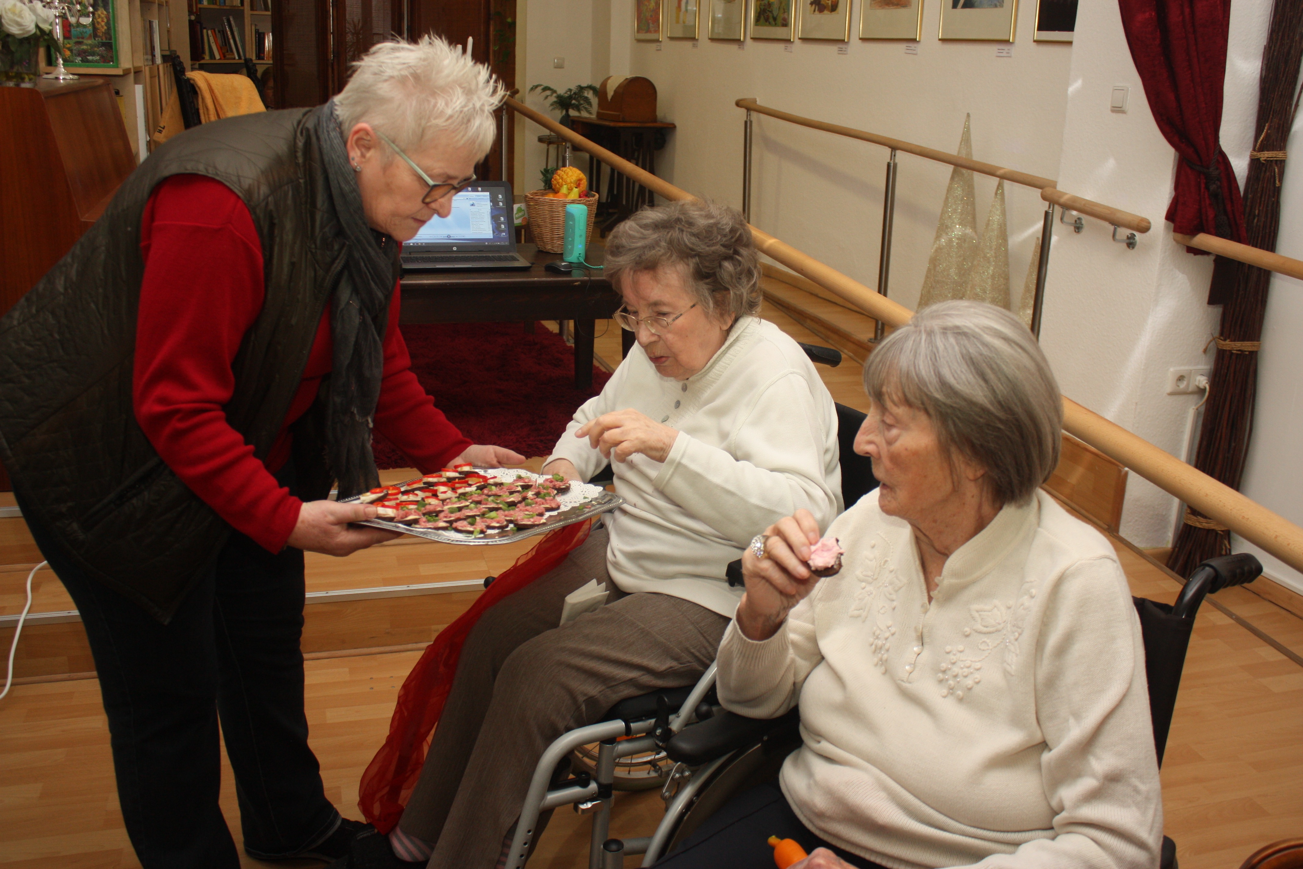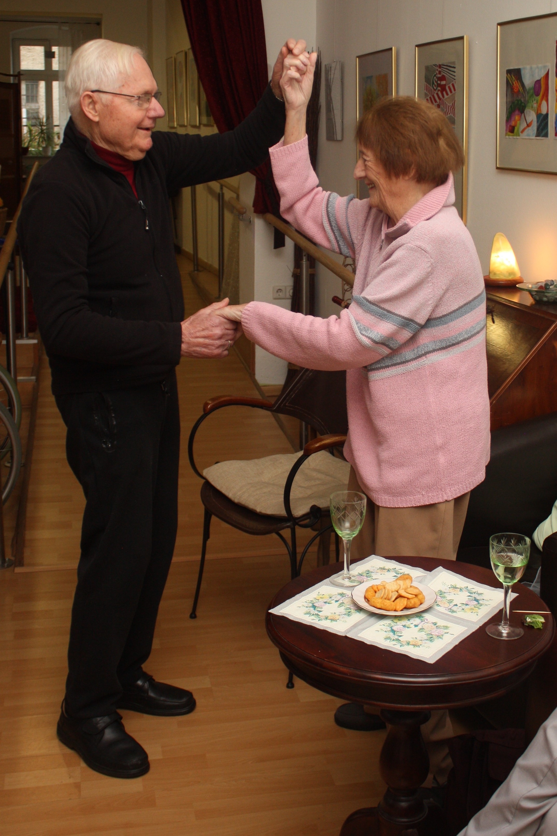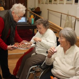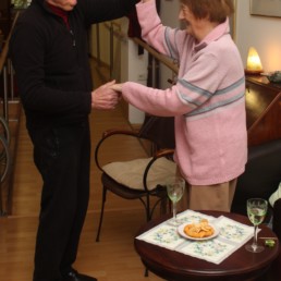 Beim ersten Tanz im neuen Jahr werden unsere Bewohner mit Häppchen verwöhnt. Wir stoßen nochmals auf 2019 an und schwingen fröhlich das Tanzbein.