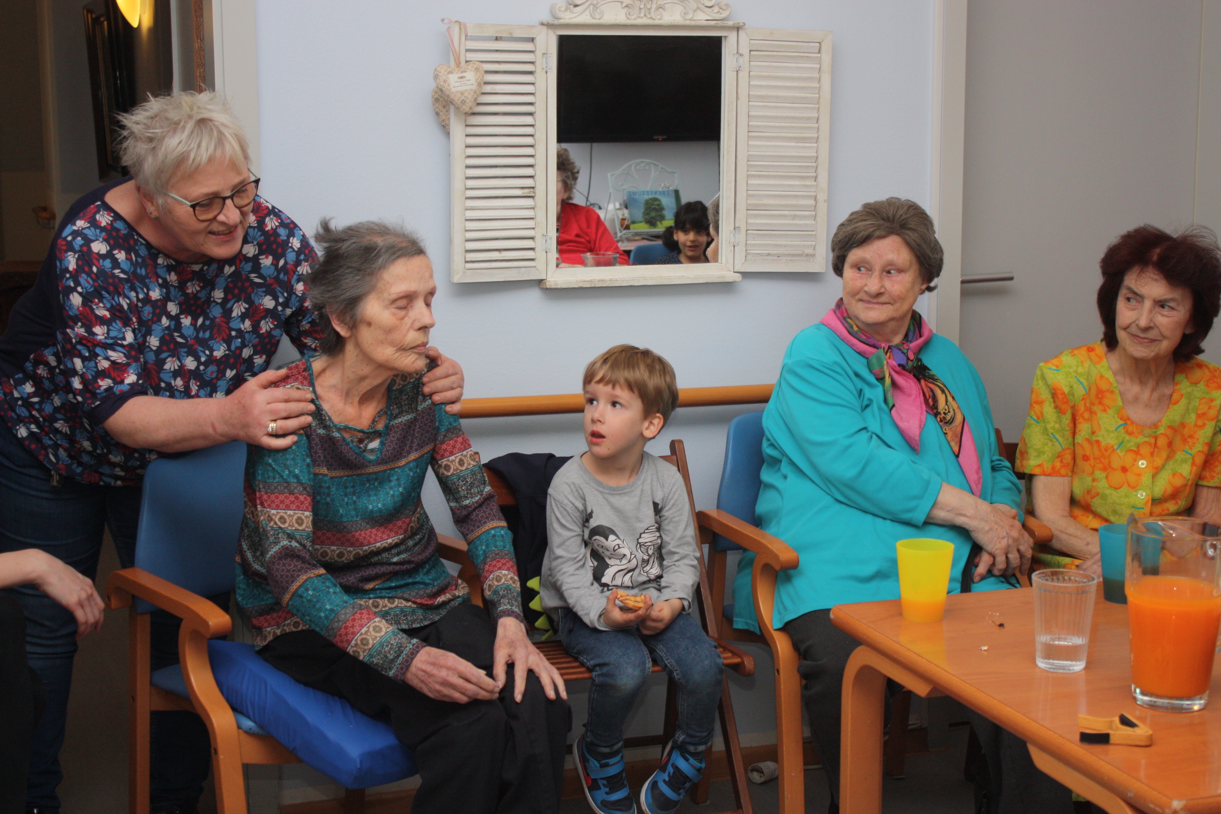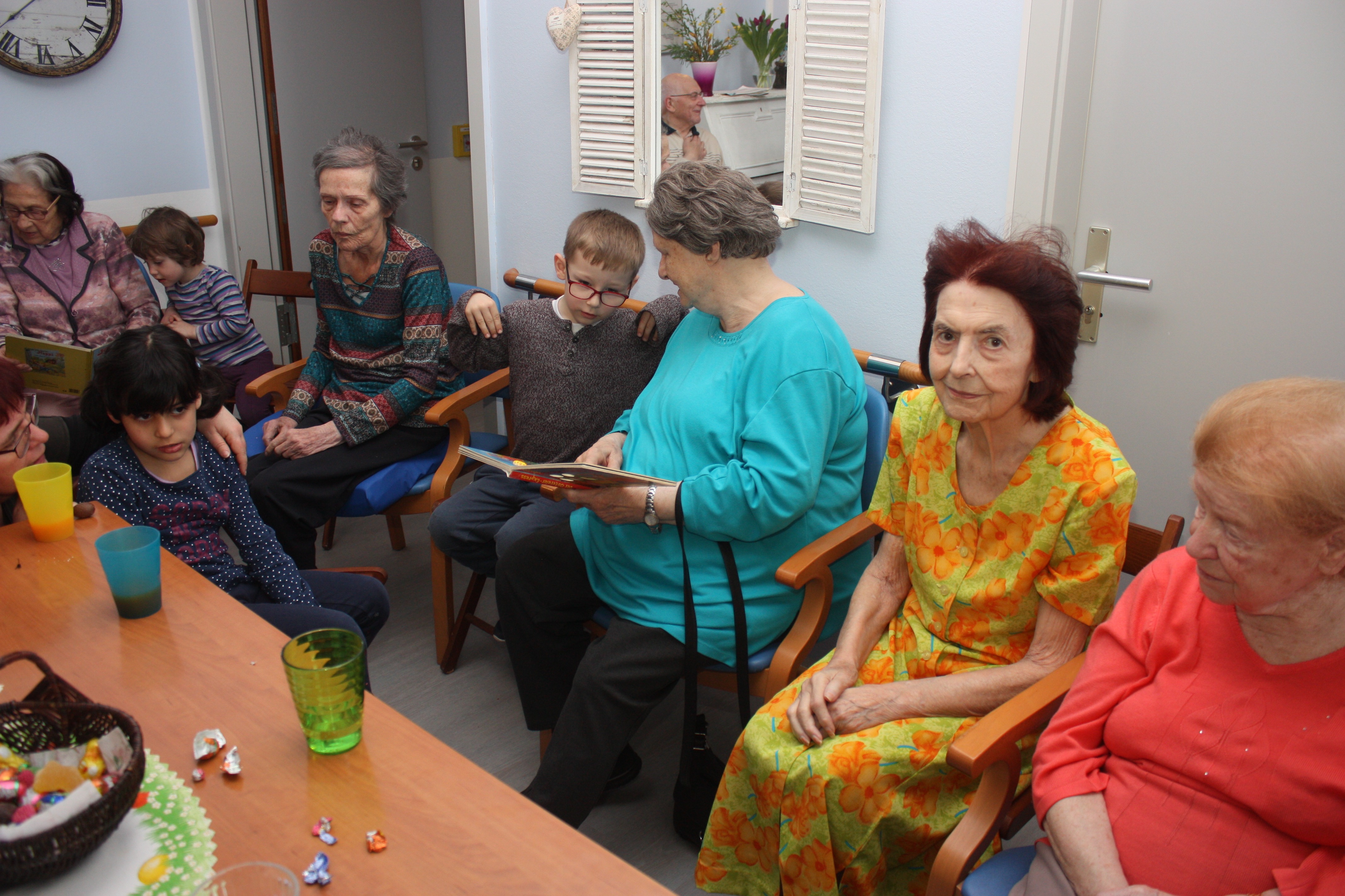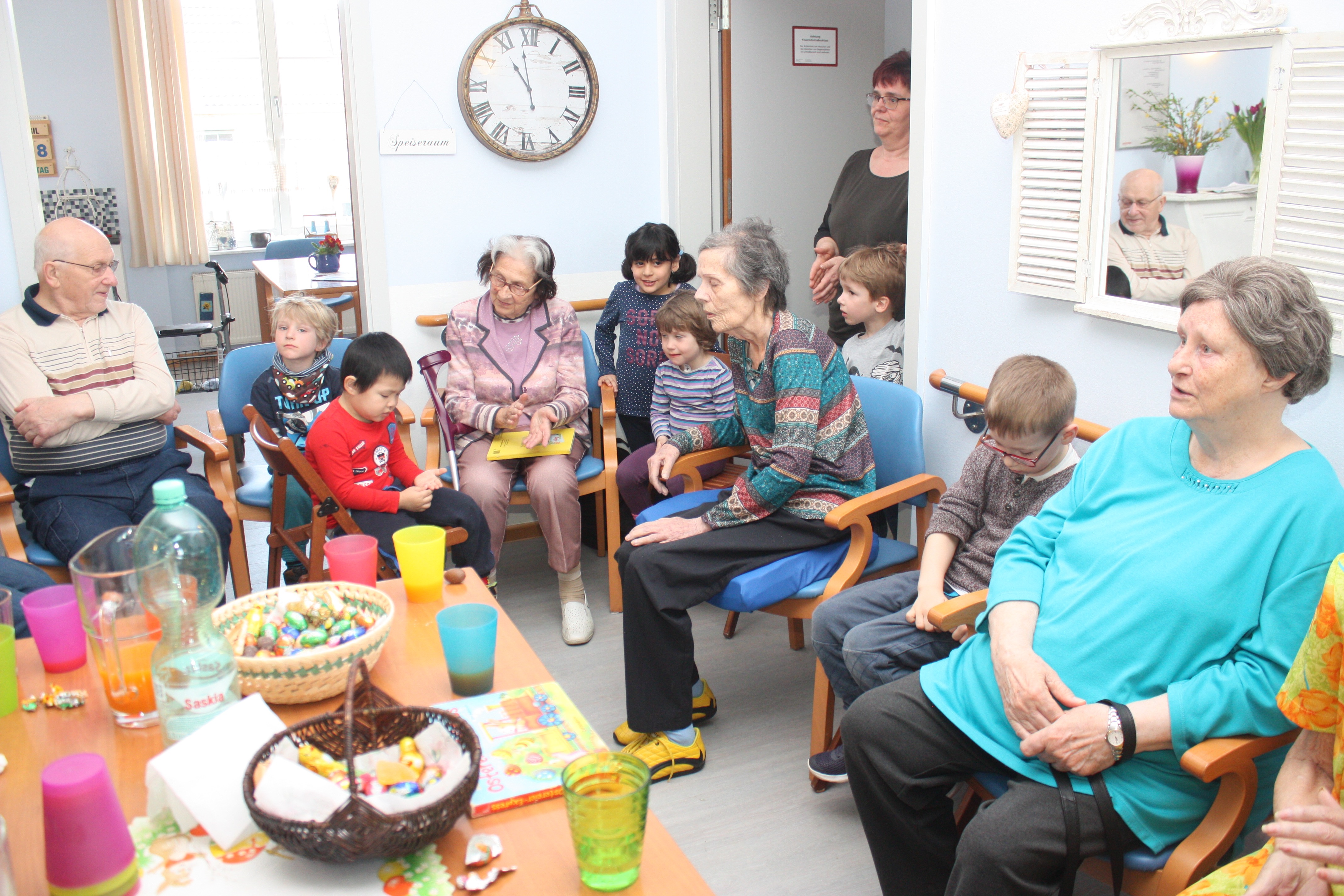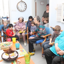 Kurz vor Ostern bekommen wir Besuch von einer Kindergartengruppe. Wir singen gemeinsam, essen Schokoeier und einige unserer Senioren lesen den Kindern aus Büchern vor. Für alle eine sehr schöner Vormittag.