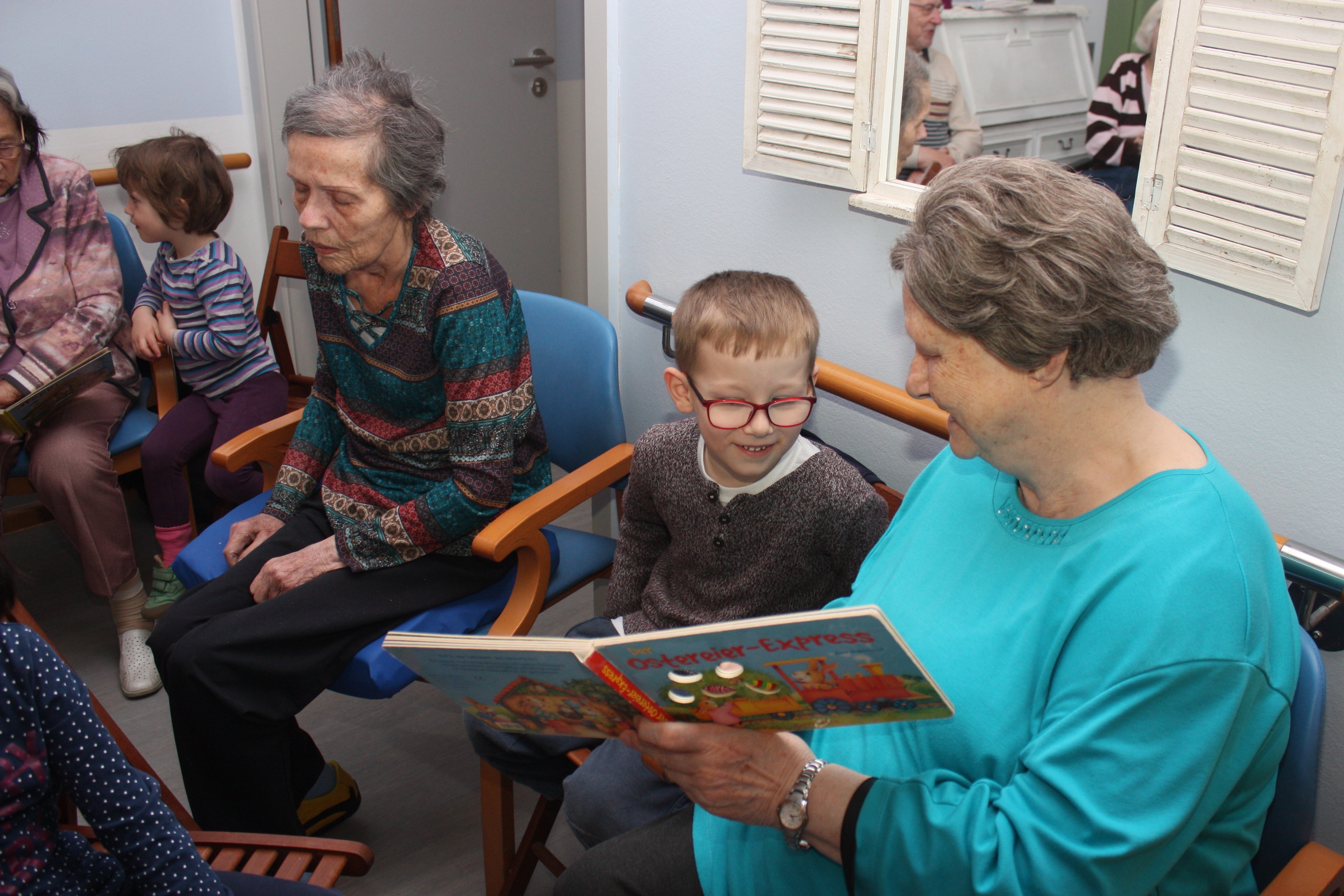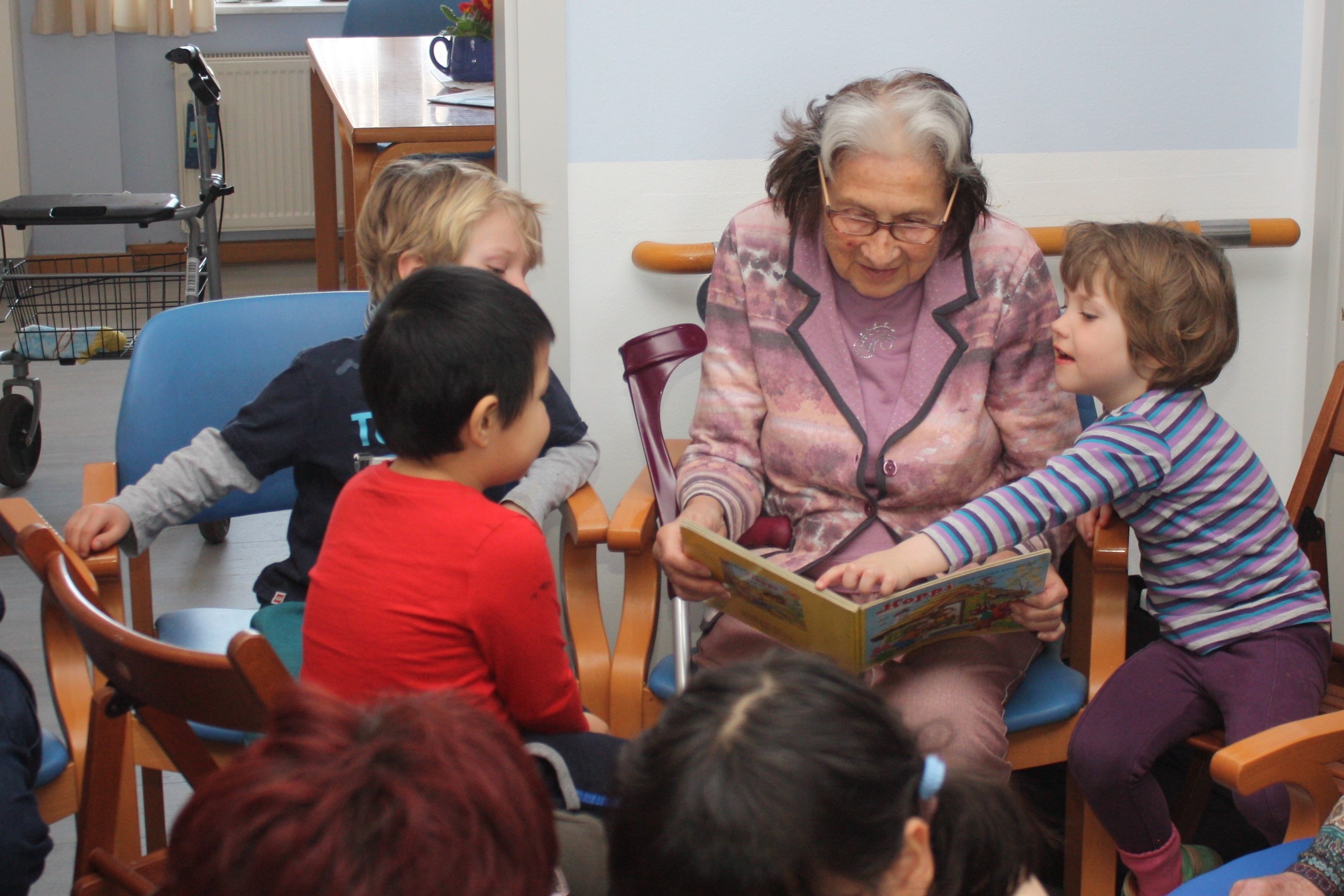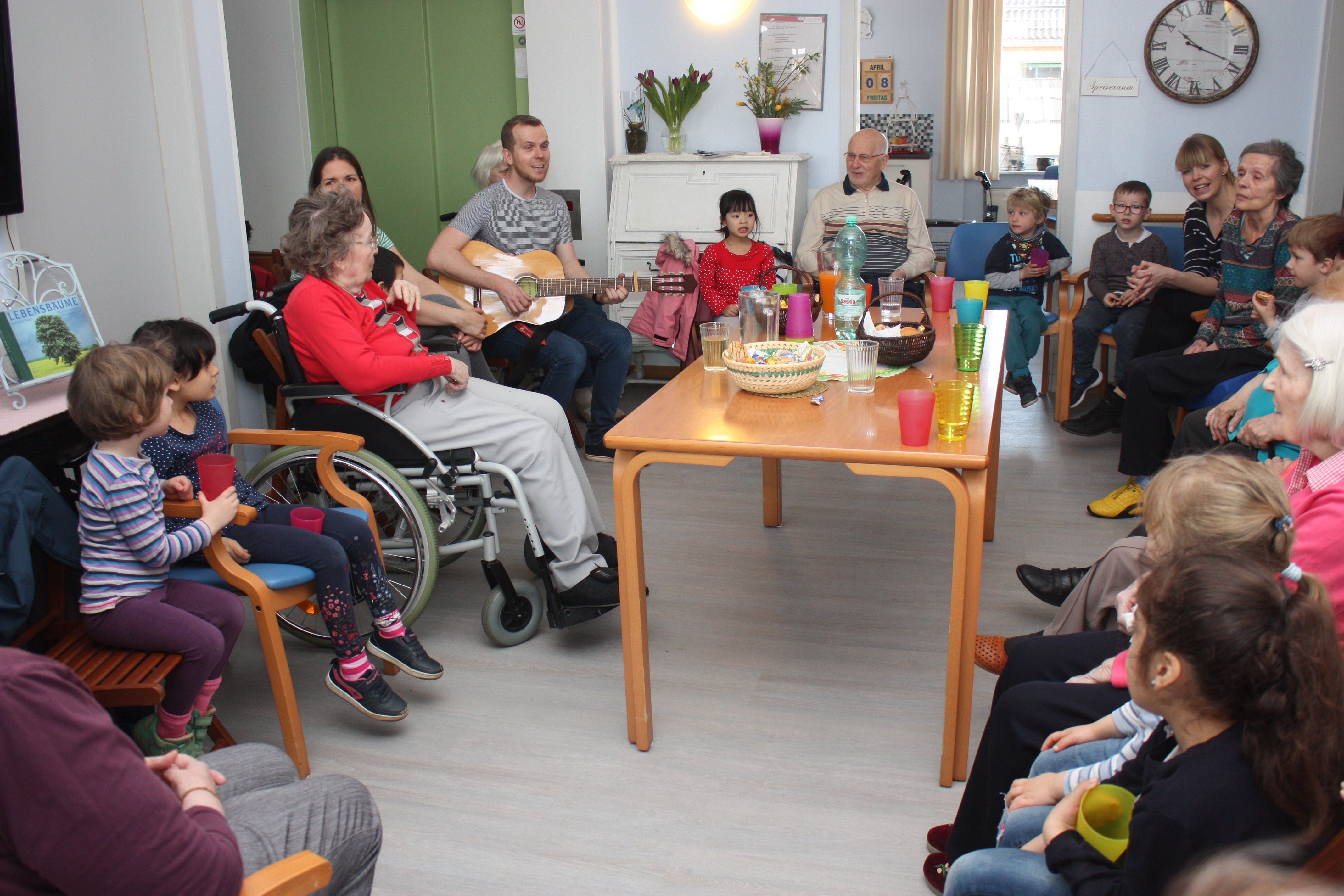 Kurz vor Ostern bekommen wir Besuch von einer Kindergartengruppe. Wir singen gemeinsam, essen Schokoeier und einige unserer Senioren lesen den Kindern aus Büchern vor. Für alle eine sehr schöner Vormittag.