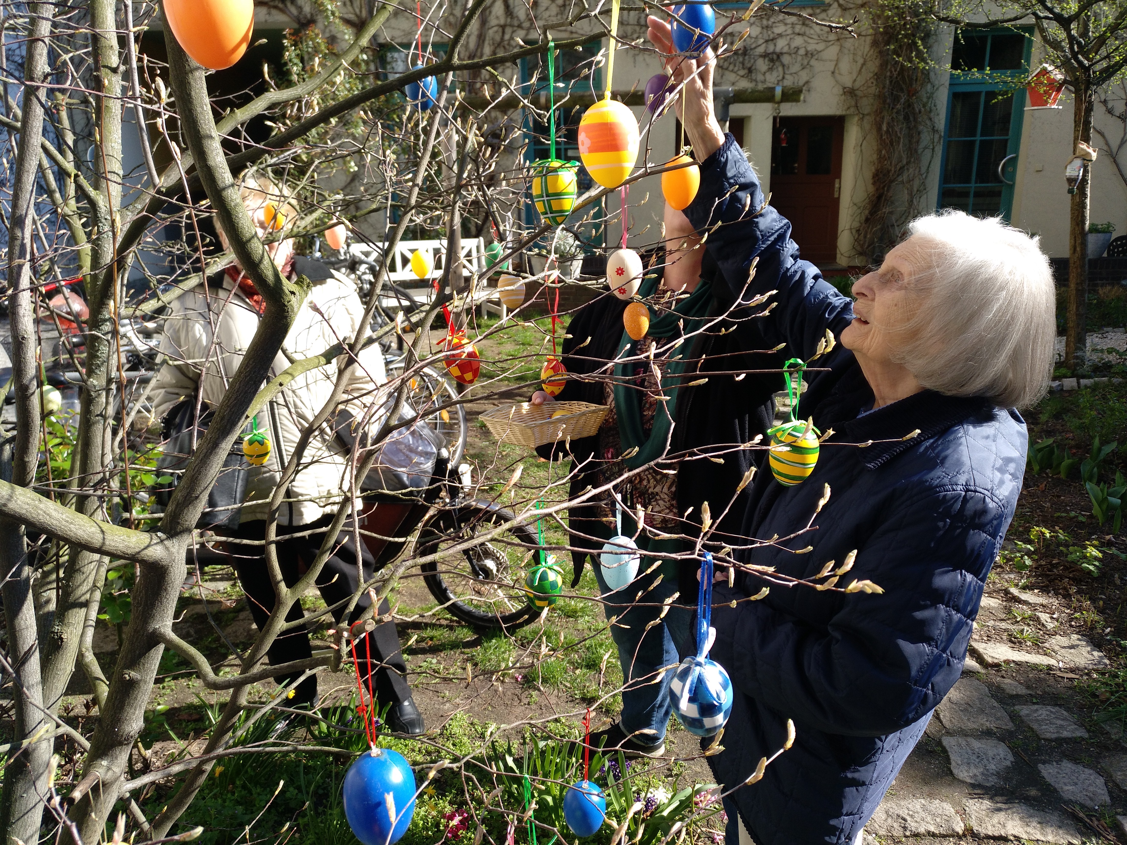 Wir schmücken unseren Osterbaum und verbringen den Gründonnerstag im Garten bei Eierlikör, Häppchen und Musik.