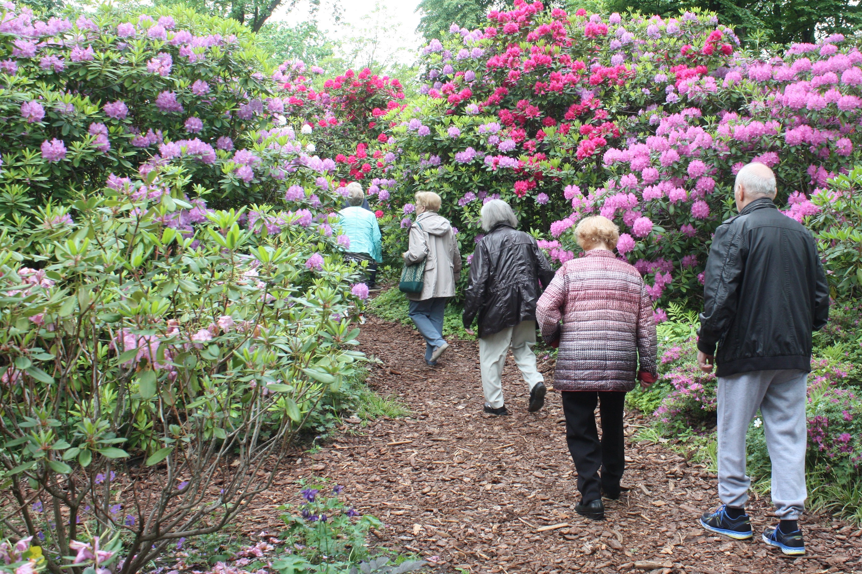 Ende Mai fahren wir in den Britzer Garten und nehmen an einem geführten Rundgang durch den Rhododendrenpark teil. Die Führung war auf demenzerkrankte Besucher abgestimmt und fand in einem kleinen Kreis statt. Unsere Senioren fühlten sich sehr wohl und sie staunten über die Blütenpracht der Rhododentdren.