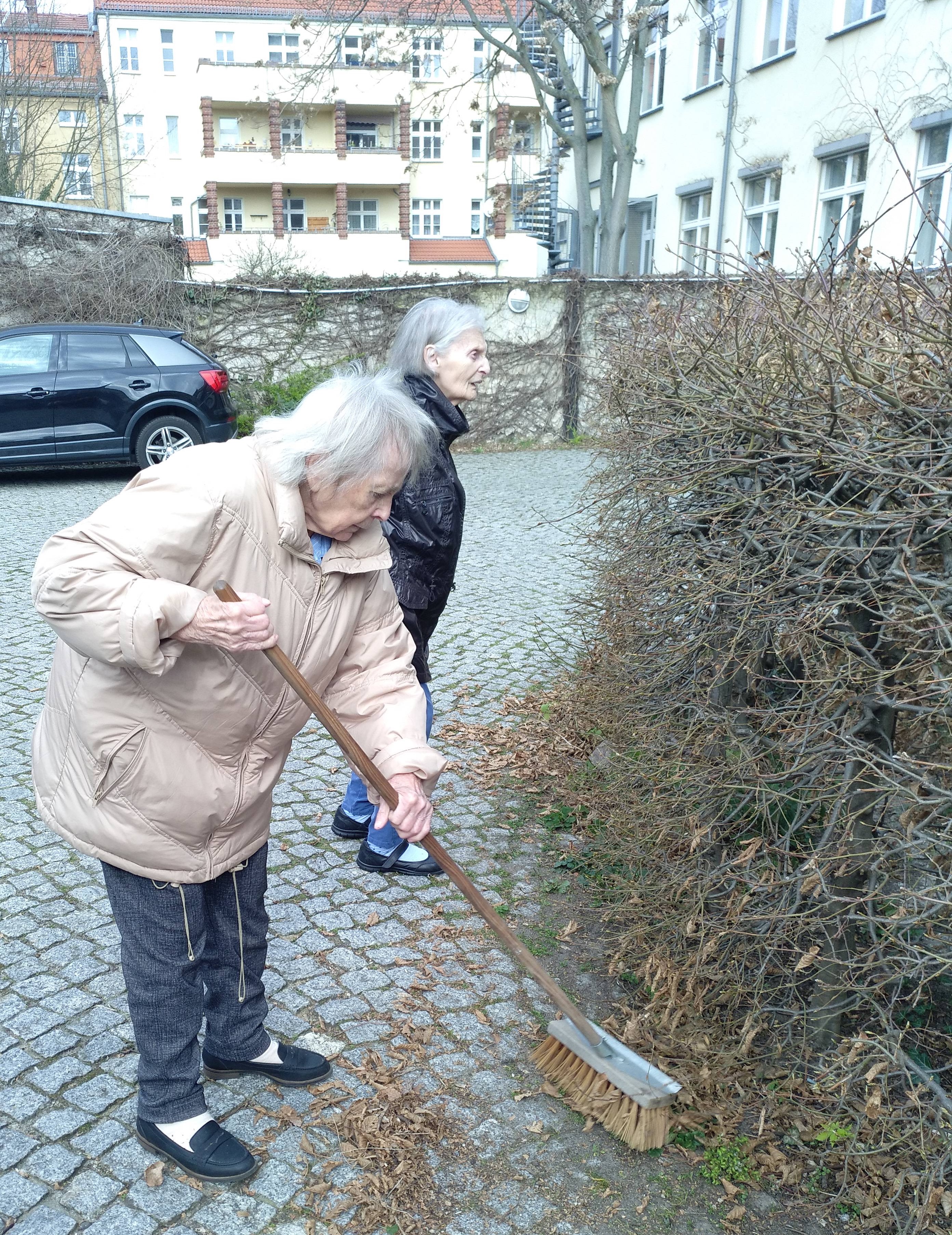 Erst kommt der Frühjahrsputz im Garten. Später bestaunen wir unsere Pflanzen. Zur Freude aller haben wir wieder unseren Osterbaum geschmückt.