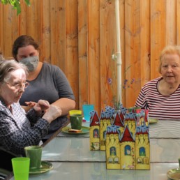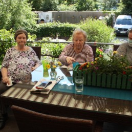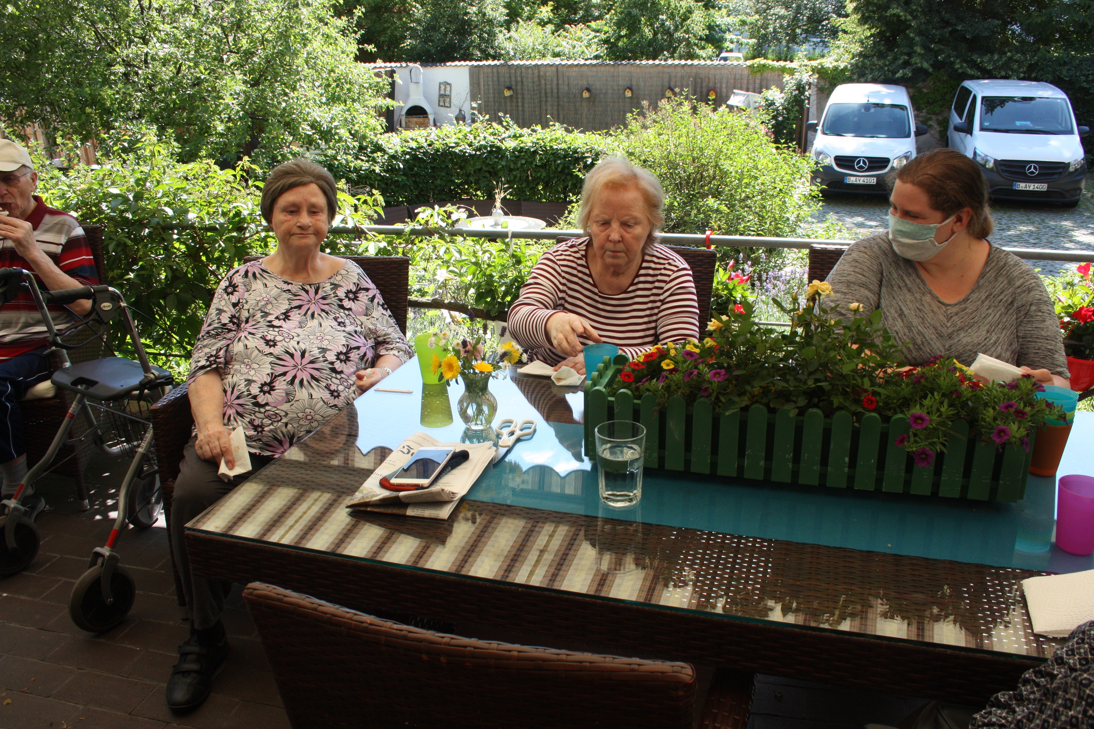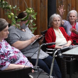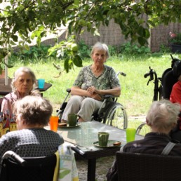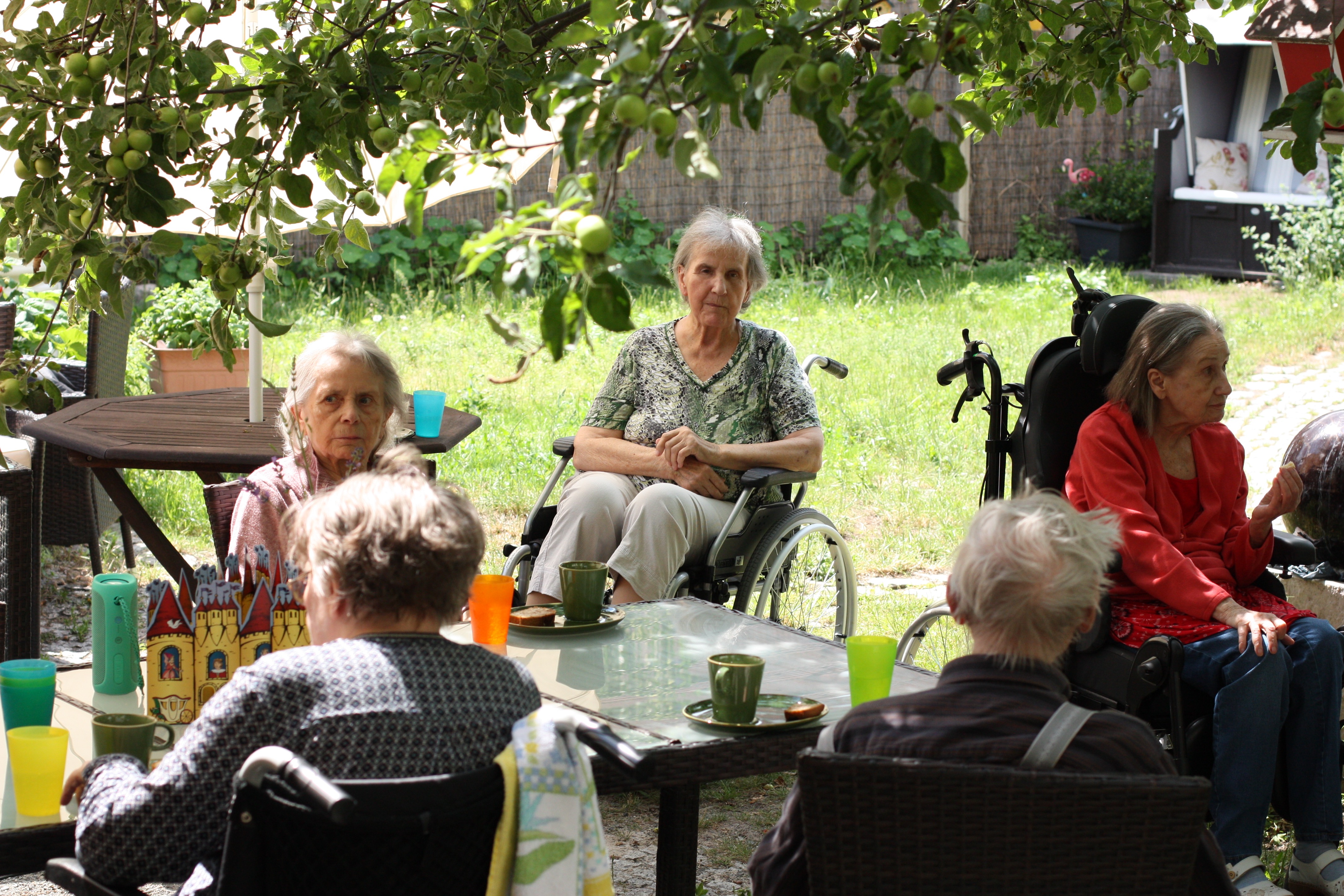 Dank des bisher so schönen Sommers konnten wir mit unseren Bewohnern schon viele sonnige Stunden in unserem Garten verbringen. Wir singen zur Musik, naschen ein Eis, lauschen einem Märchen oder trinken zusammen Kaffee.