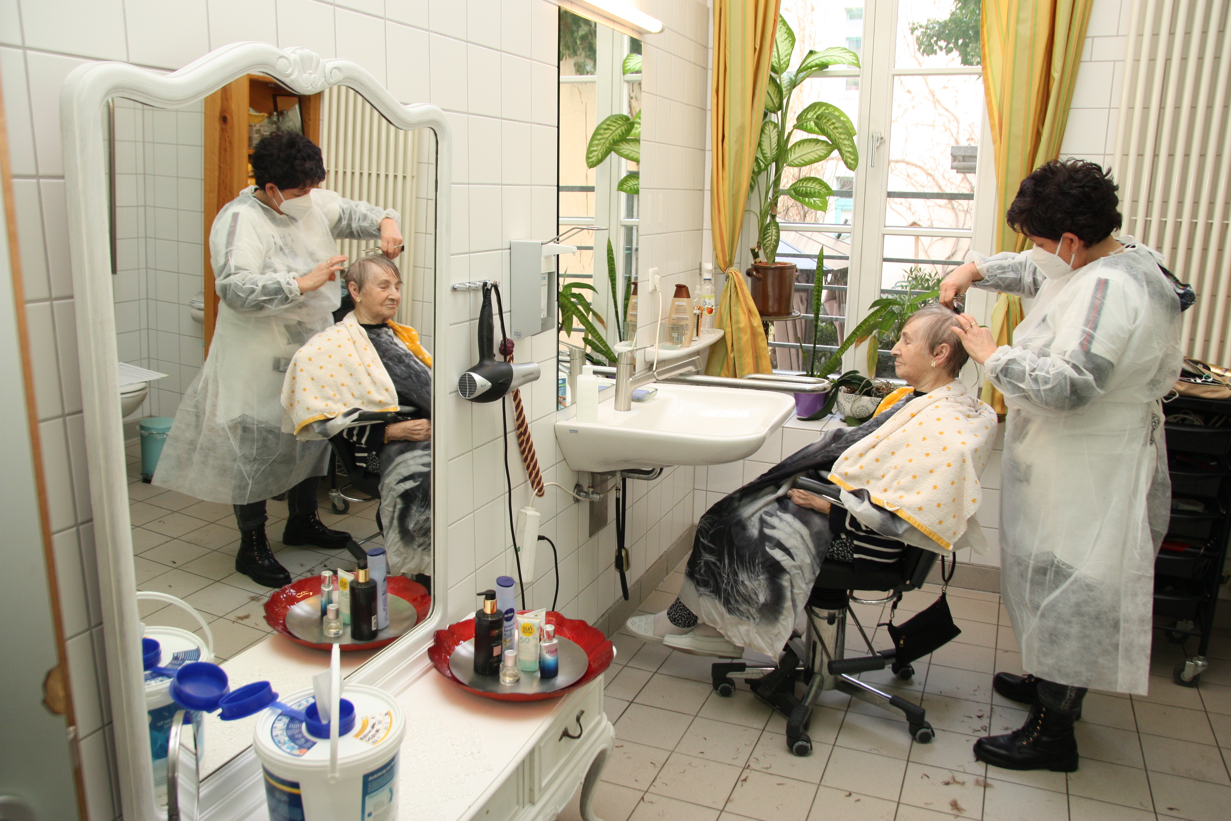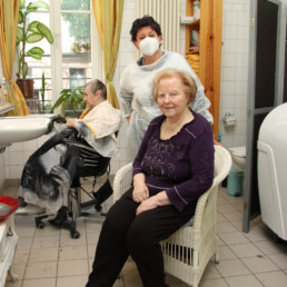 Auch in der zweiten „Corona-Welle“ durfte der Friseur nicht ins Haus. Wie froh waren wir alle, als dies endlich wieder möglich war und unsere Bewohner wieder chic frisiert werden konnten.