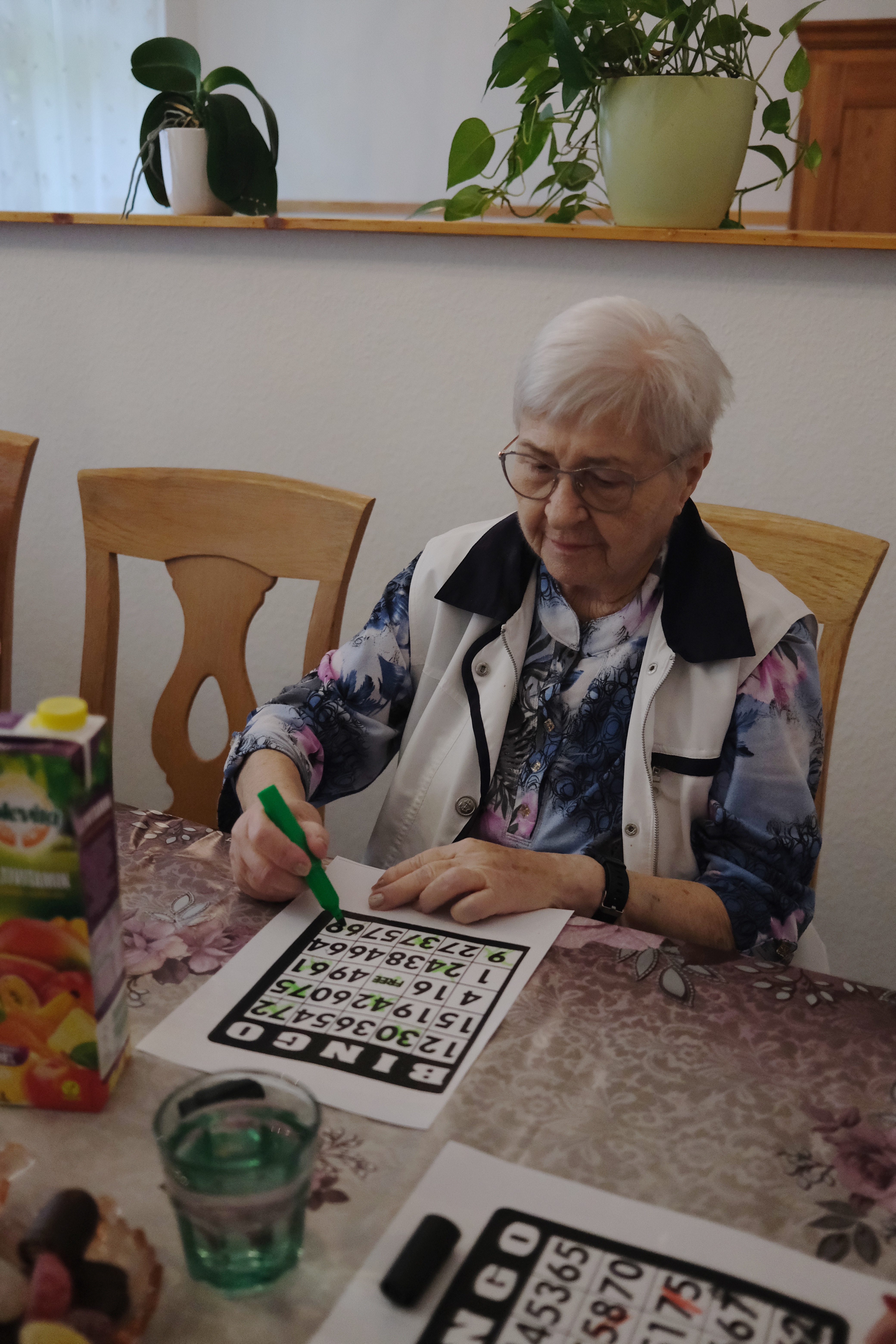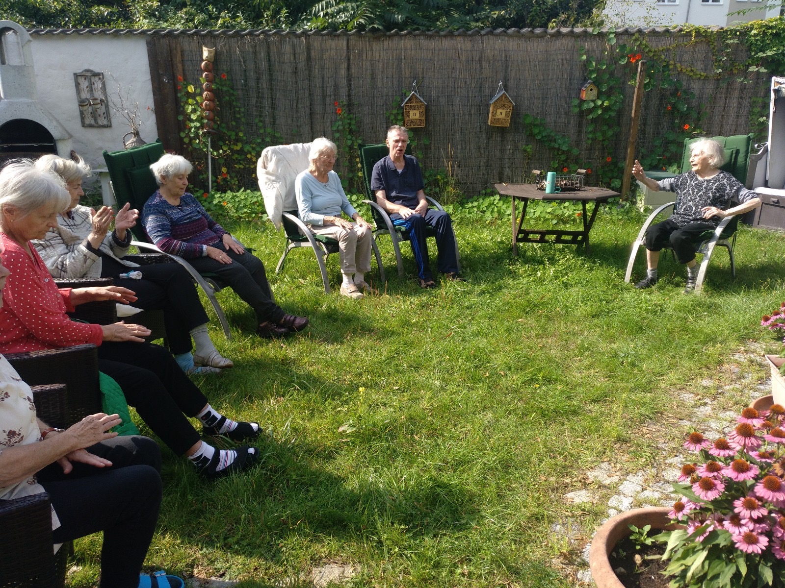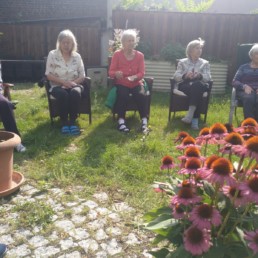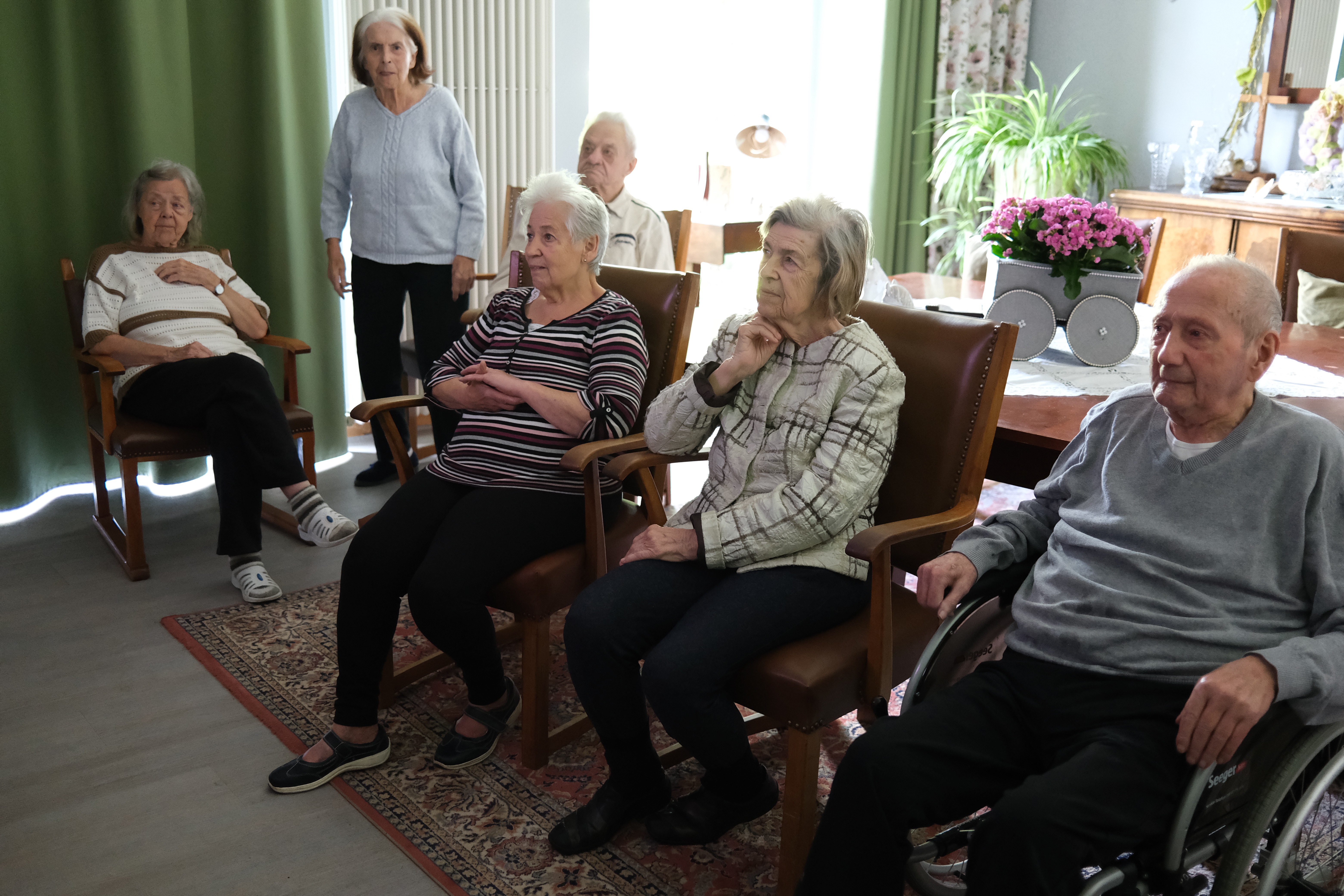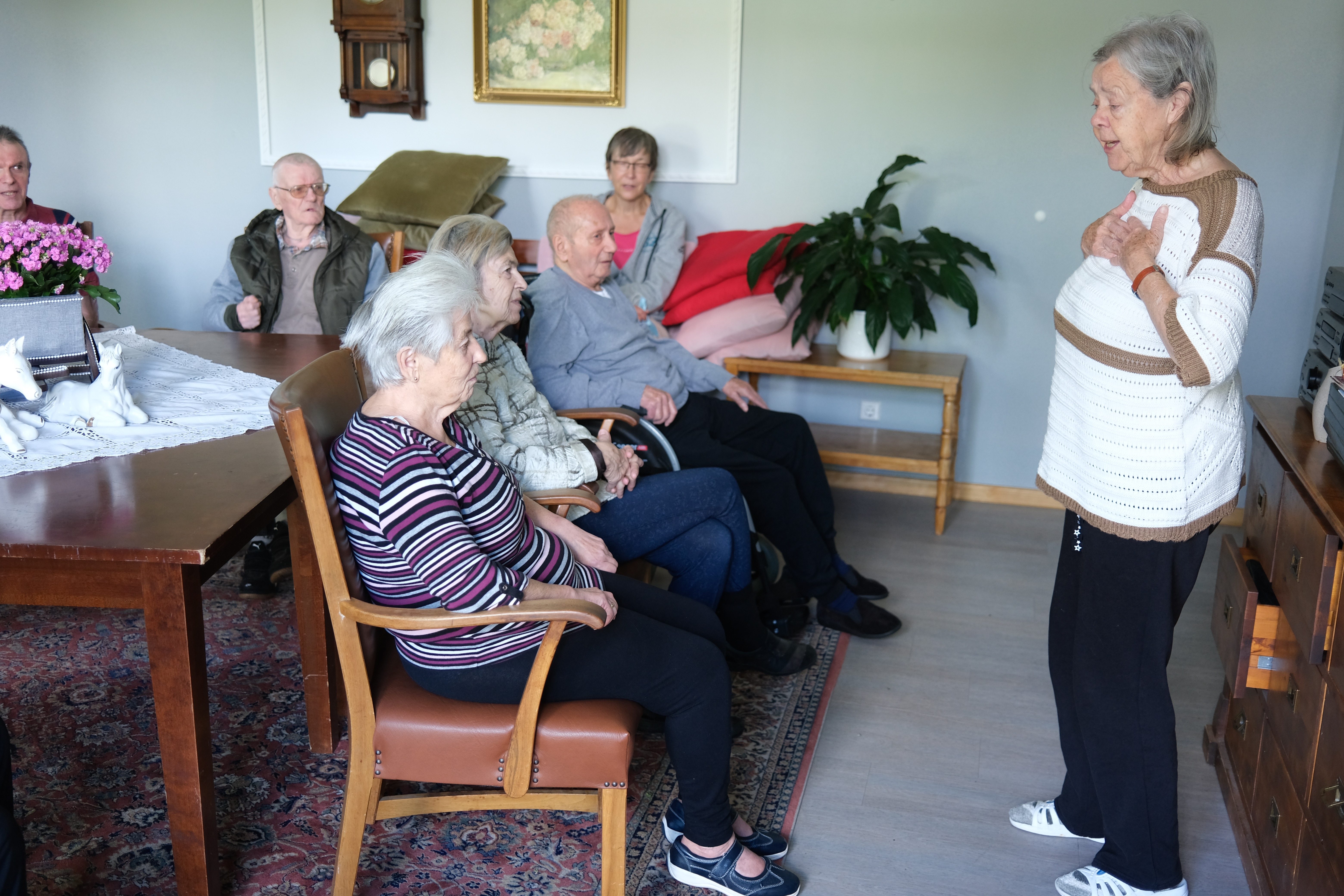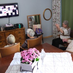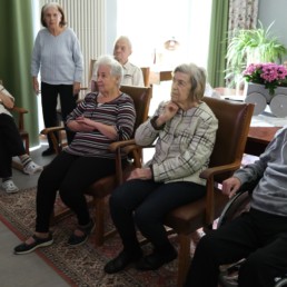 Regelmäßig treffen wir uns zum singen. Mit Freude dirigiert uns eine Bewohnerin die selbst jahrelang im Chor gesungen hat. Mit ihr schauen wir uns auch ein Video an, das uns ihr Chor zur Verfügung gestellt hat, und welches in der Pandemie entstanden ist.