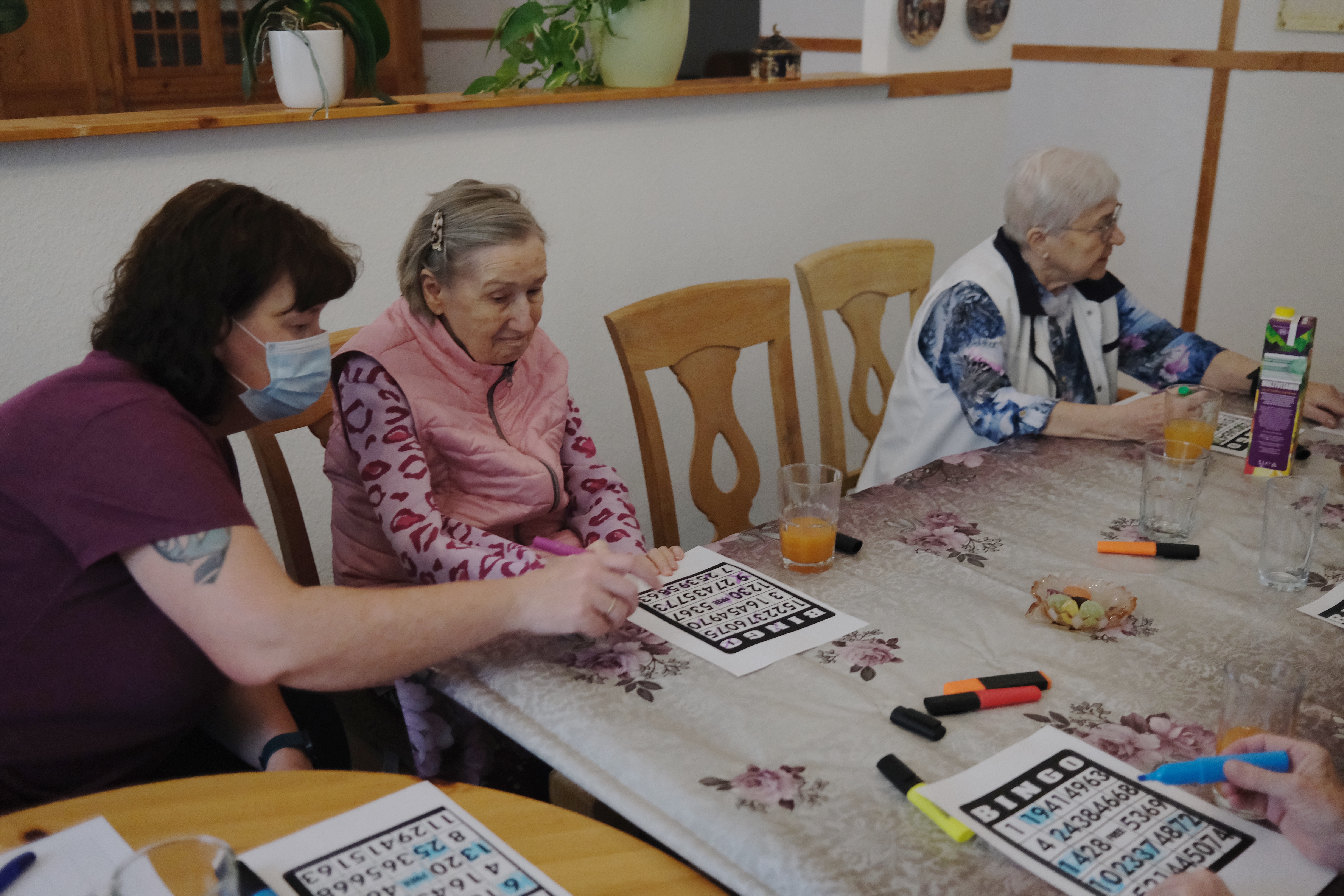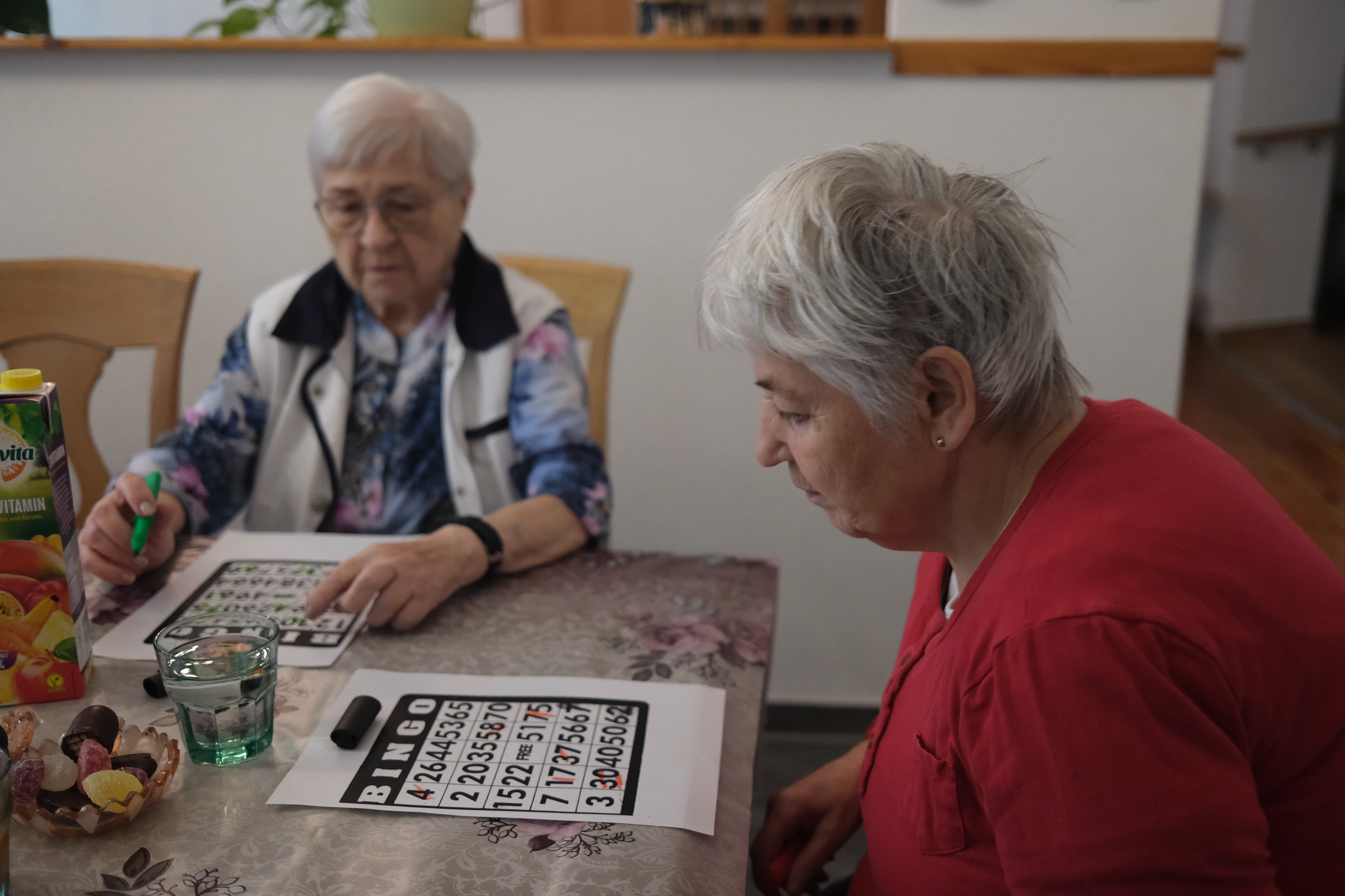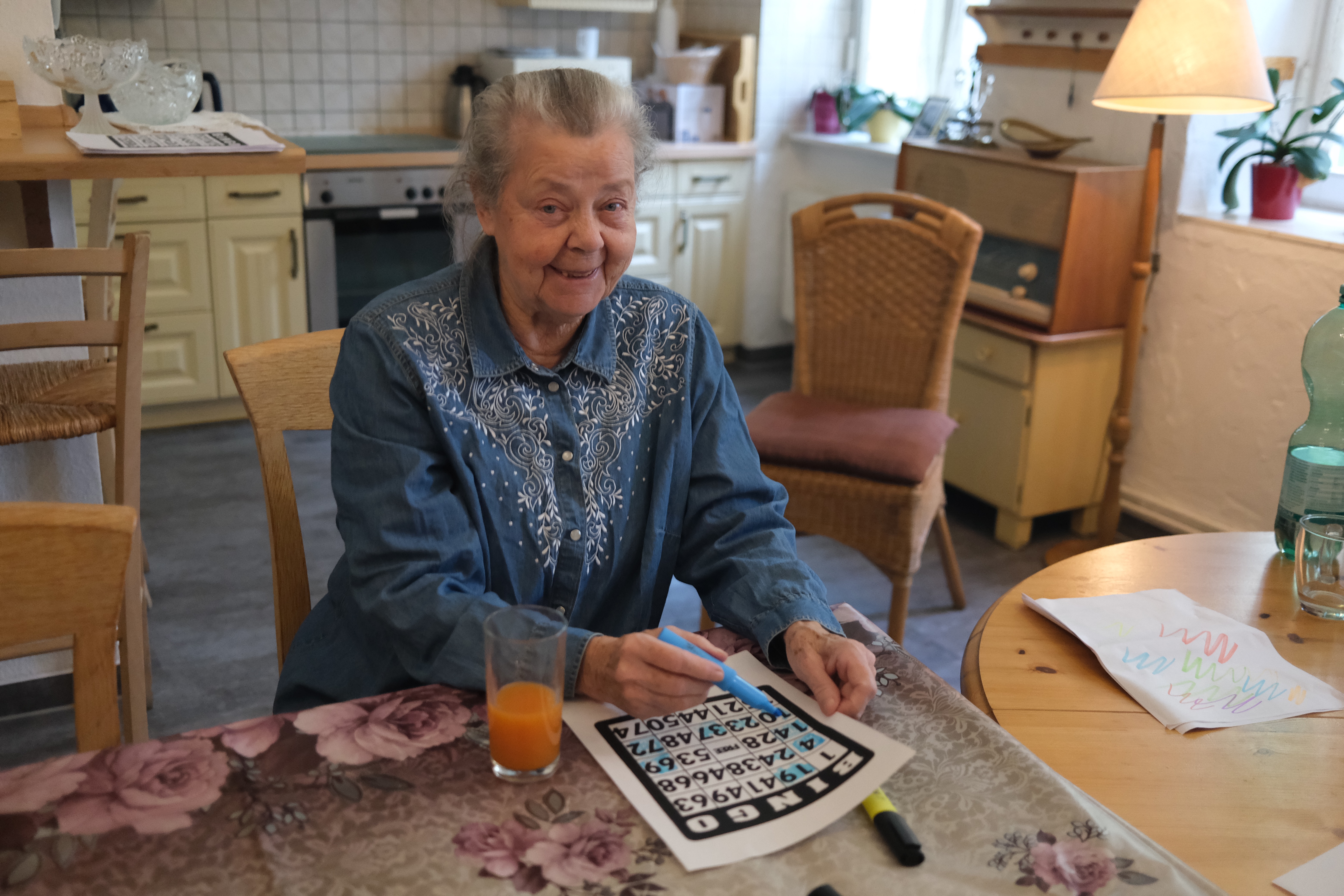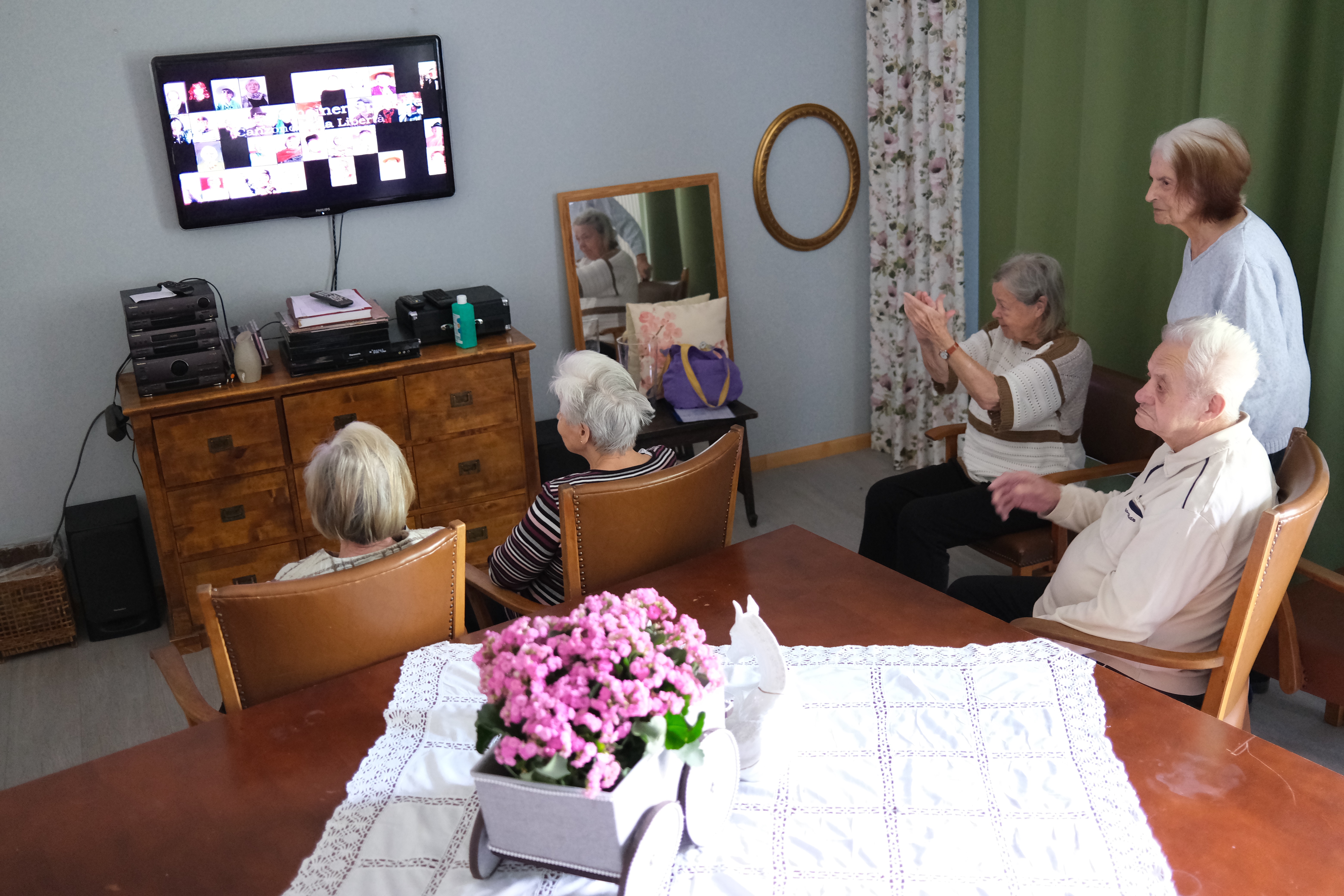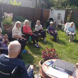 Regelmäßig treffen wir uns zum singen. Mit Freude dirigiert uns eine Bewohnerin die selbst jahrelang im Chor gesungen hat. Mit ihr schauen wir uns auch ein Video an, das uns ihr Chor zur Verfügung gestellt hat, und welches in der Pandemie entstanden ist.